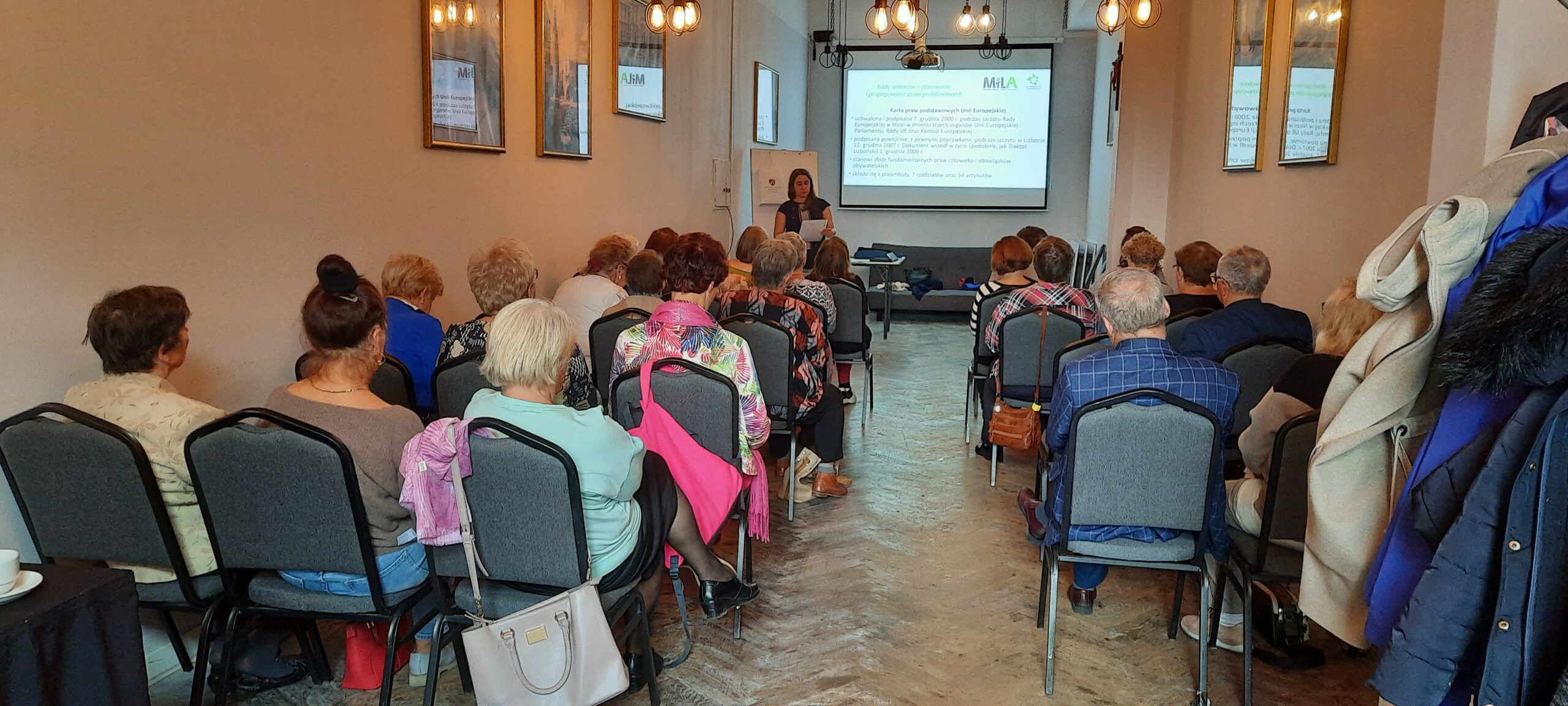 Podczas warsztatów w ramach projektu „Rady seniorów – stosowanie i propagowanie praw podstawowych” zastanawialiśmy się nas ważnością i uniwersalnością praw człowieka, ich umiejscowieniem w systemach prawnych i powszechną kodyfikacją. Staraliśmy się przełożyć ogólność zapisów Karty Praw Podstawowych Unii Europejskiej na konkretne przykłady, dotyczące życia seniorów. Burzliwa dyskusja świadczyła o istotności tematu i konieczności zagwarantowania poszanowania podstawowych wolności. Temat będziemy dalej zgłębiać, podczas kolejnych warsztatów oraz planowanej dyskusji.